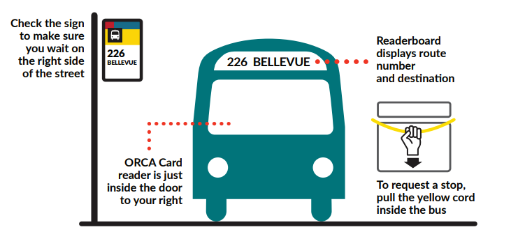 Upon entering the bus or train, you will be required to pay the fare for the trip. To pay the fare on the bus, tap an ORCA card, insert a bus ticket (tickets can be purchased at a ticket vending machine) into the on-board fare box, or insert an exact amount of cash or coins into the fare box to cover the fare. Remember, drivers cannot give change.