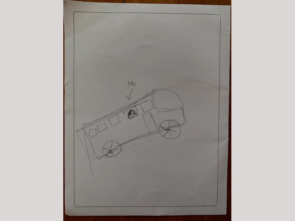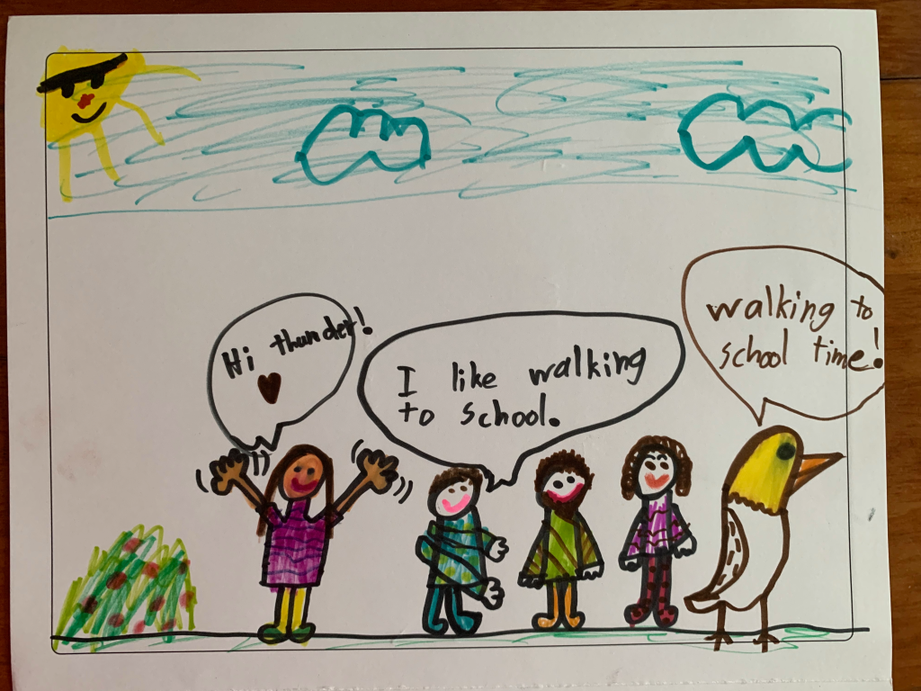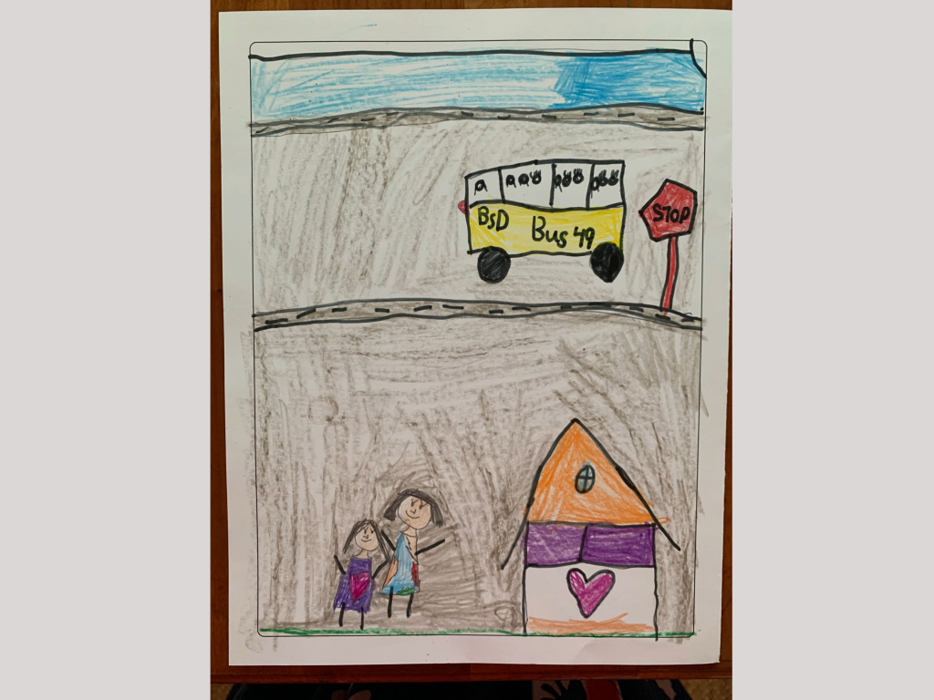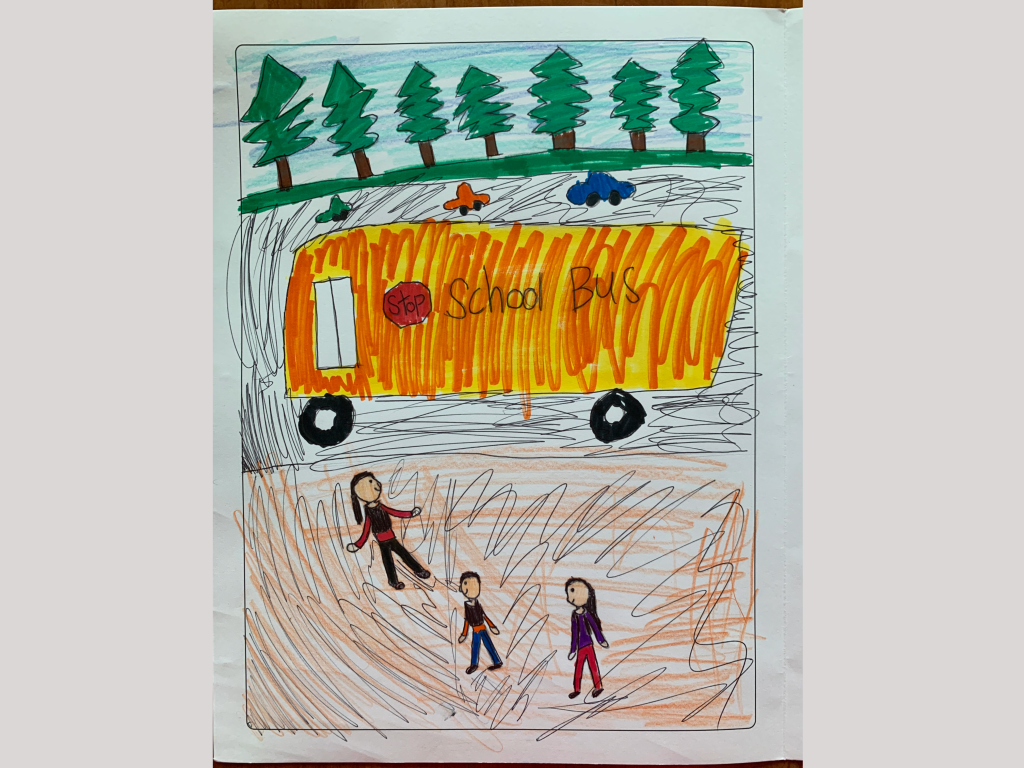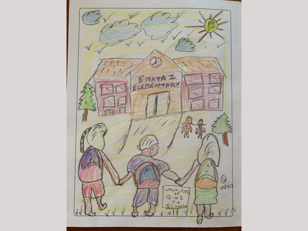 Thanks to students from participating schools who submitted art projects depicting their trips to school in spring 2023! We received over 200 projects, and program staff evaluated them. The following three projects were selected to be featured in our upcoming fall 2023 campaign materials